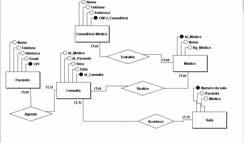Nosso objetivo era o de criar um arquivo de modelo conceitual para gerenciamento de um consultório médico.