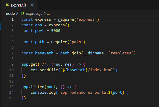 Nosso objetivo era criar um projeto de node e fazelo rodar na rota 5000.