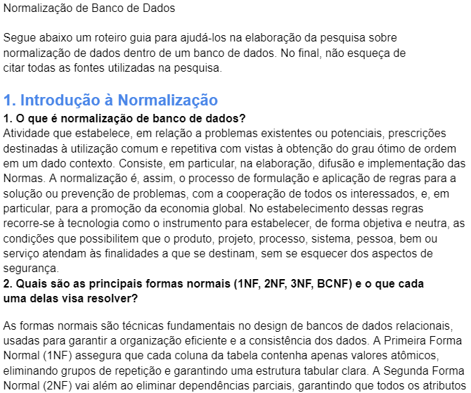 Nosso objetivo era o de responder em grupos, um roteiro de pesquisa sobre: "Normalização de banco de dados".