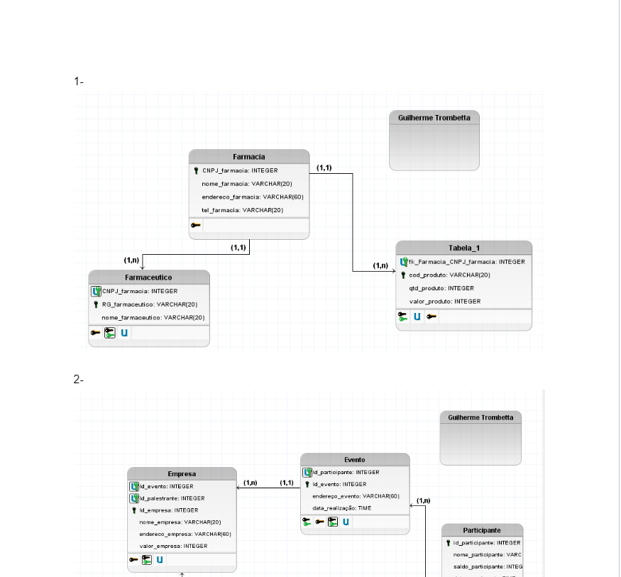 Nosso objetivo era o de transformar uma lista de Exercícios de modelo Conceitual em um formato de modelo Lógico.