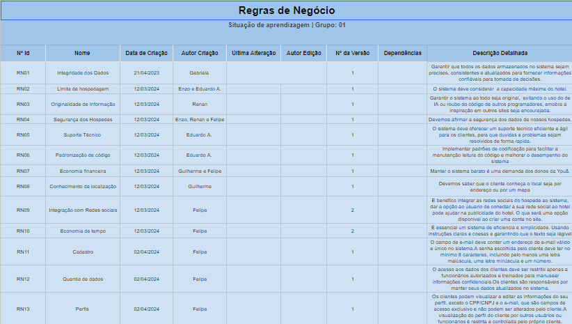Nosso objetivo era o de criar as Regras de negócio para o nosso trabalho da S.A.